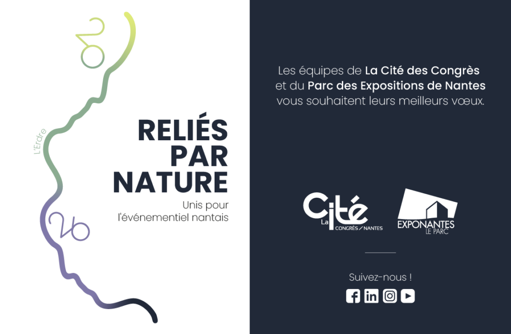La Cité des Congrès de Nantes et le Parc des Expositions reliés par nature et unis pour l’événementiel nantais ! En 2026, La Cité des Congrès de Nantes, productrice du festival Nantes Digital Week sur la commande de Nantes Métropole, et le Parc des Expositions sont réunis… et nous avons hâte d’écrire cette nouvelle page avec vous !